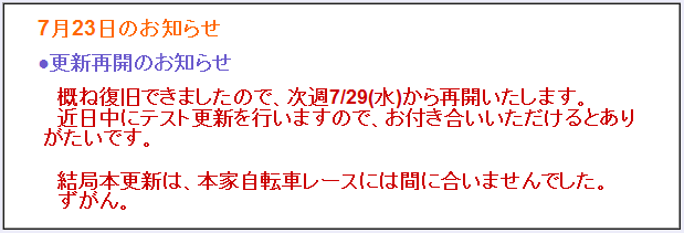 過去の結果感想とか考察とかのまとめを「前置き」の「最初に」に置きましたので、ブログの読み込み遅い時とかはご活用をー。