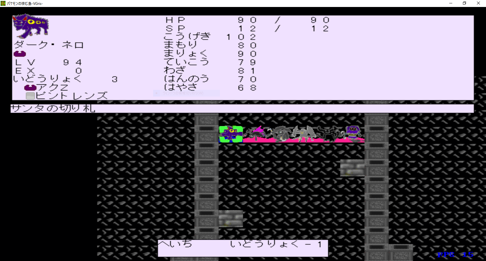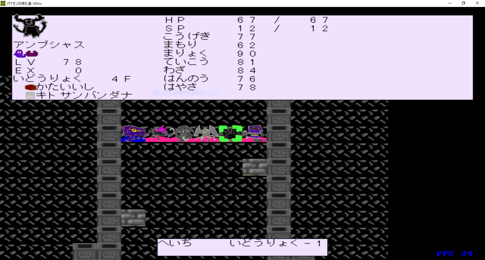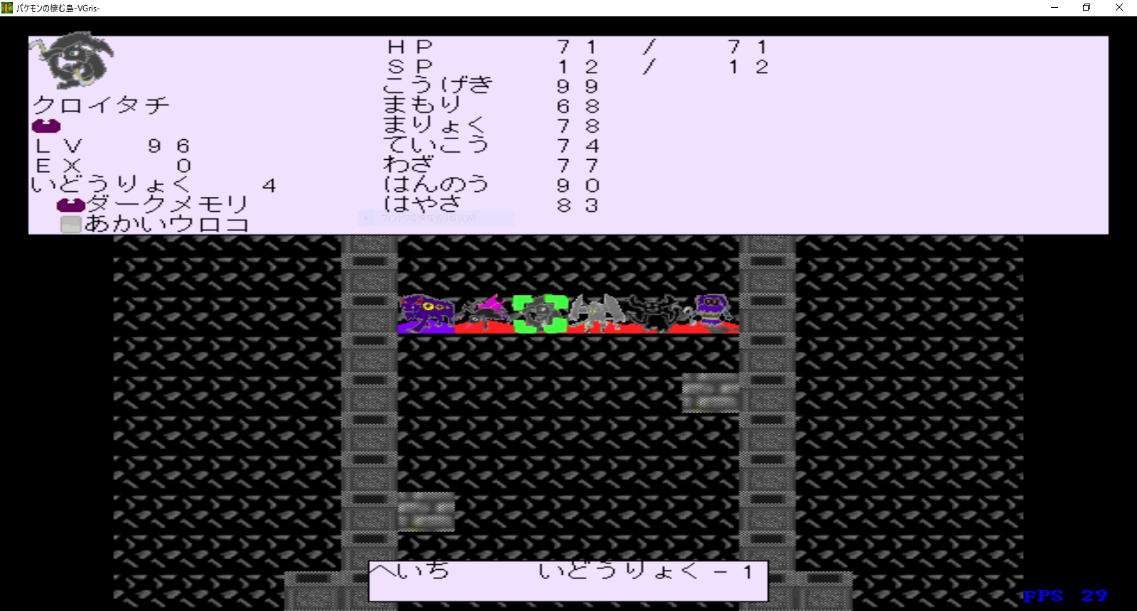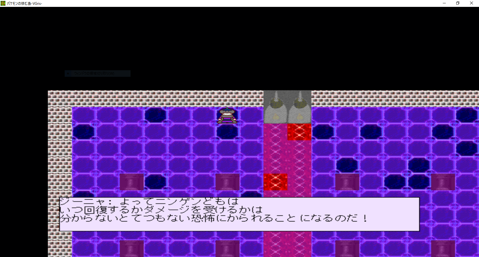 戦闘では、フィールド上で自軍バケモンが分断された状態で始まる上に、「床がダメージ床か回復床」という仕様のお陰で若干移動を強要される部分があります。