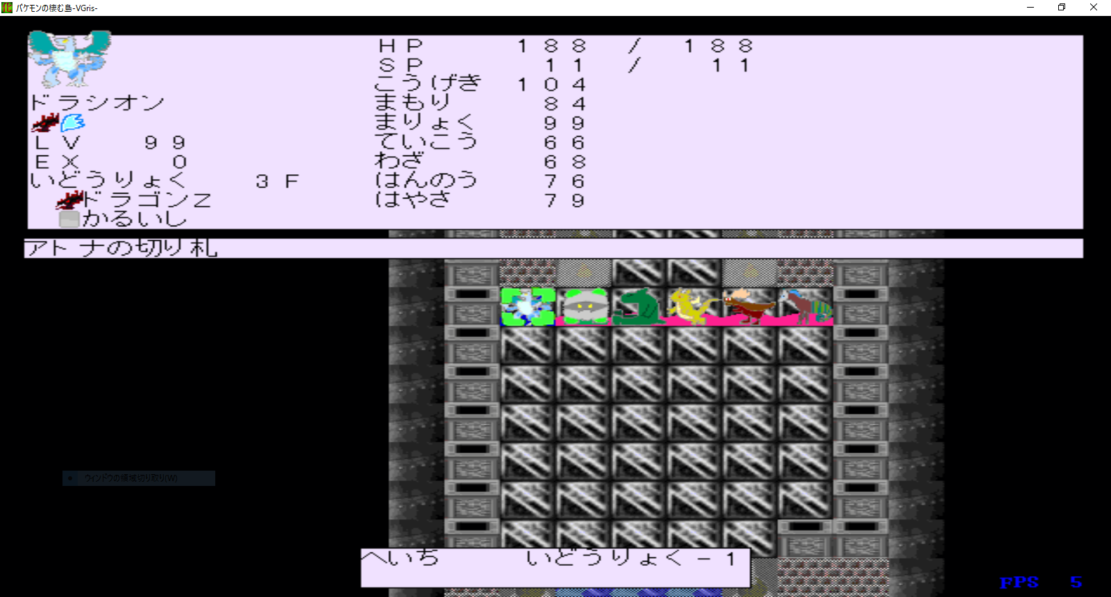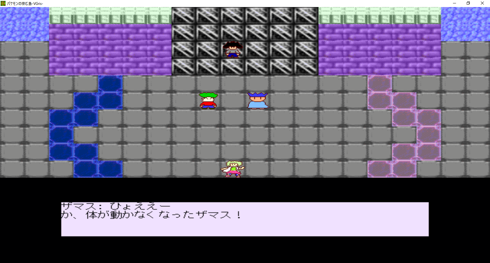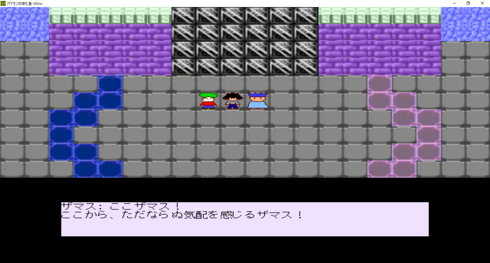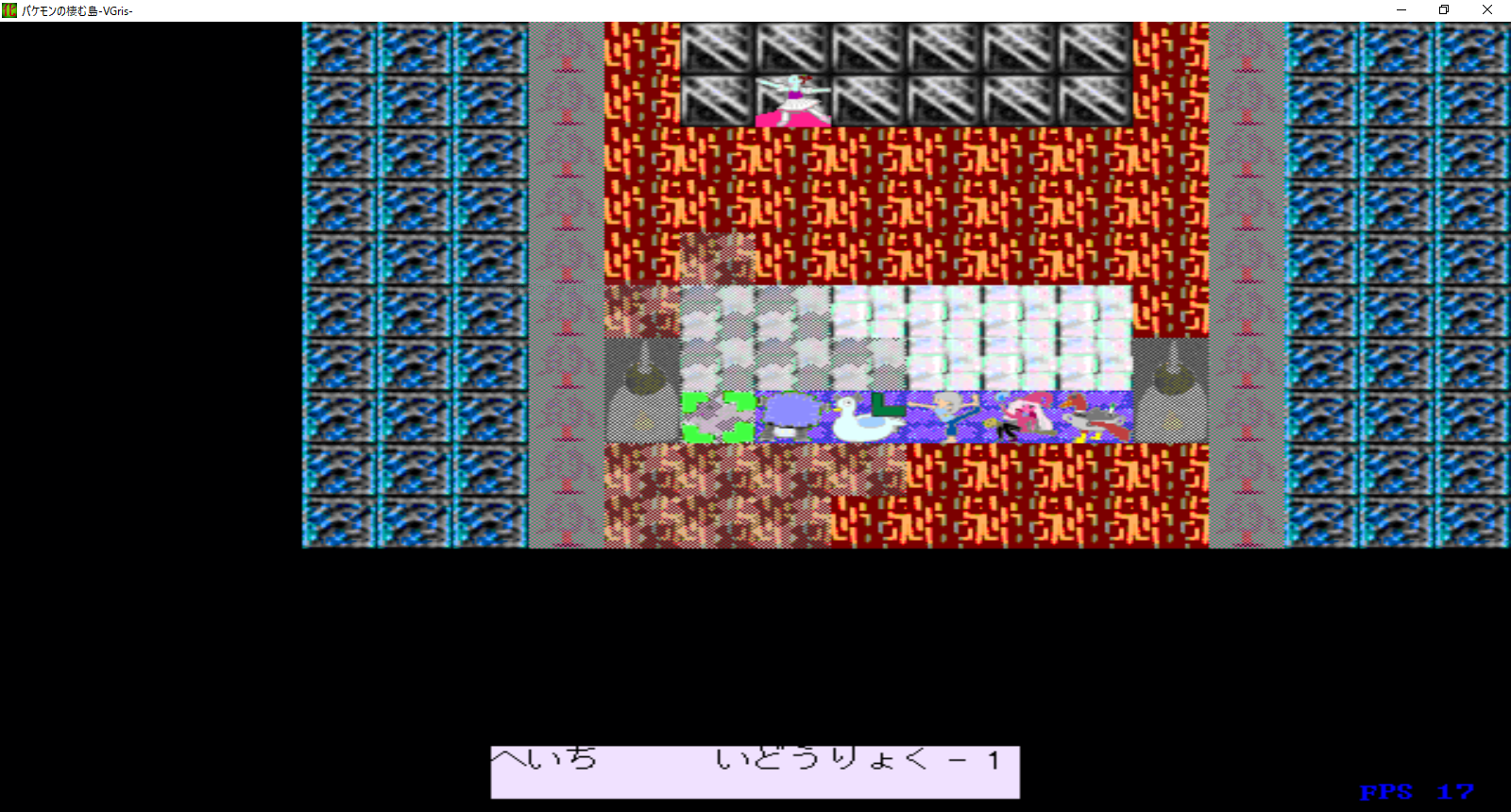 戦闘では、フィールド上で自軍バケモンが分断された状態で始まる上に、「床がダメージ床か回復床」という仕様のお陰で若干移動を強要される部分があります。
