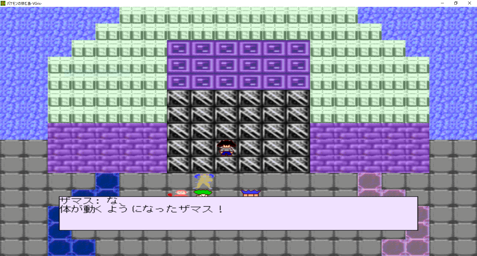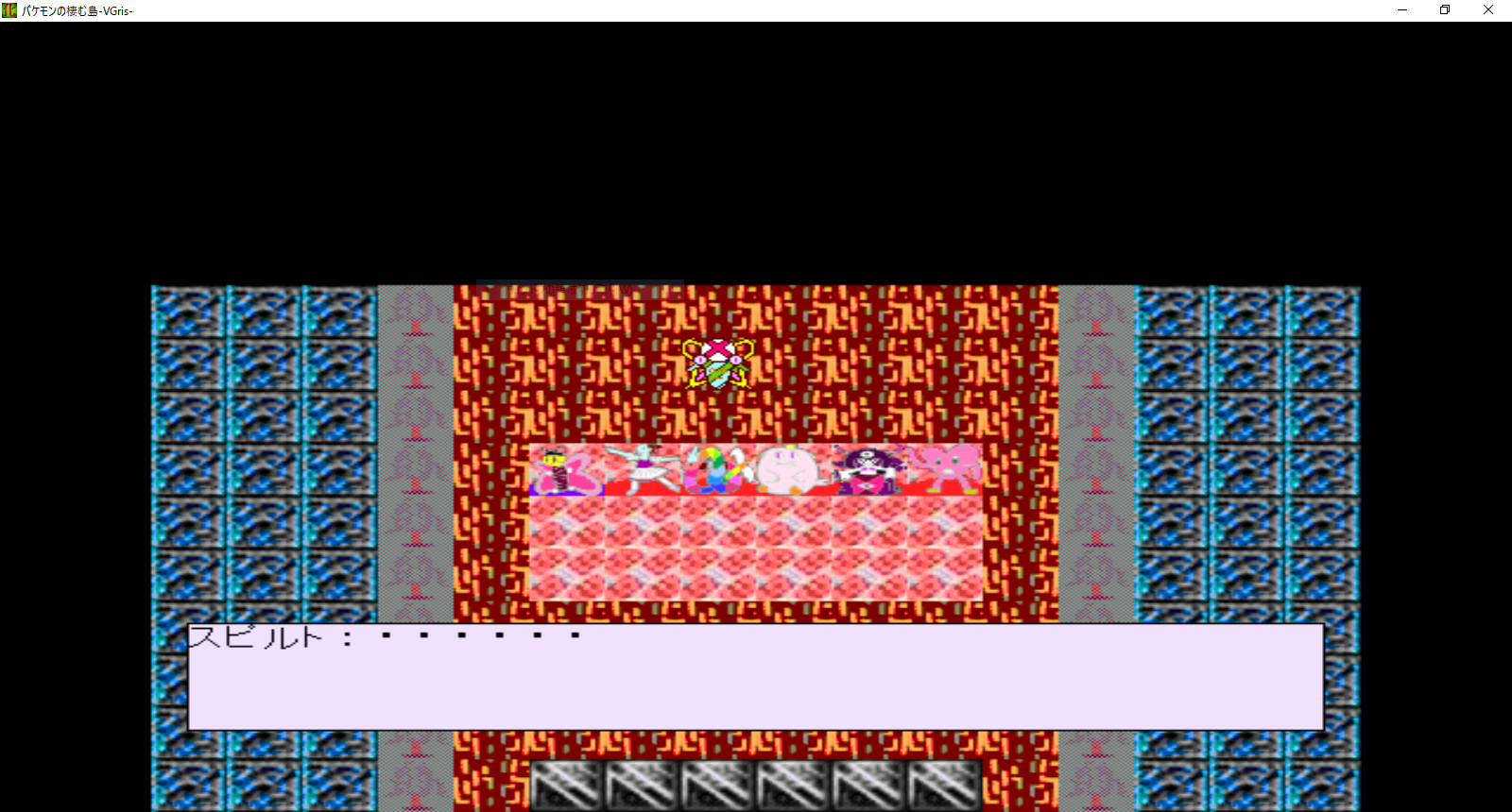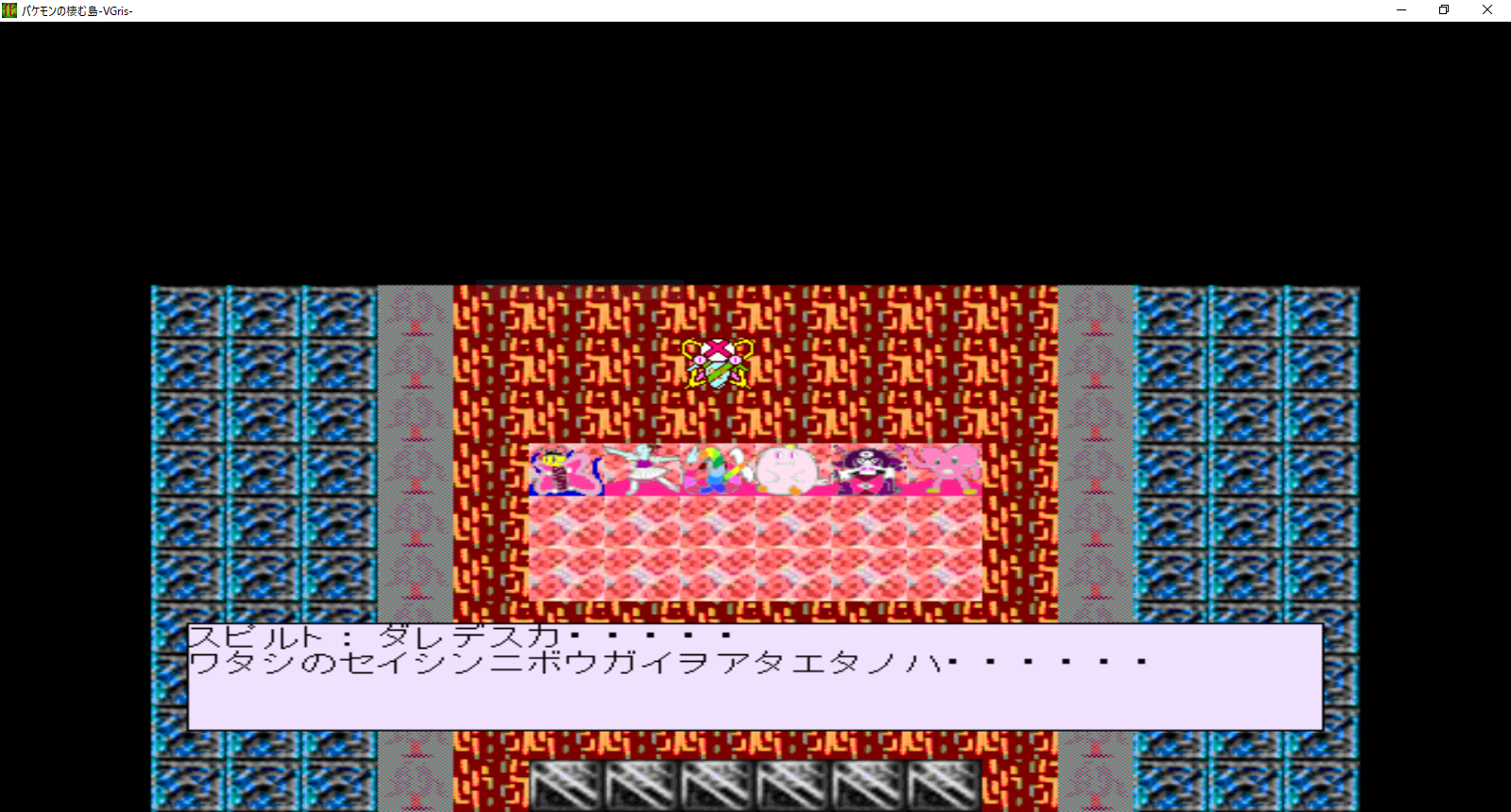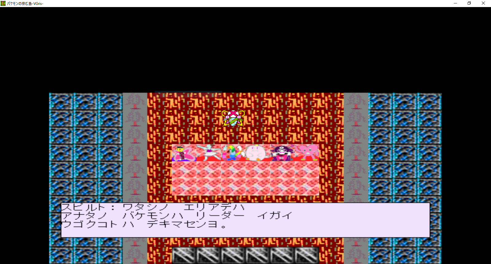 戦闘では、フィールド上で自軍バケモンが分断された状態で始まる上に、「床がダメージ床か回復床」という仕様のお陰で若干移動を強要される部分があります。
