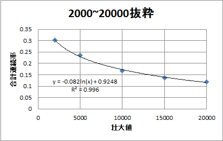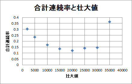 合計連続率を縦に、壮大値を横に取ってグラフにすると、