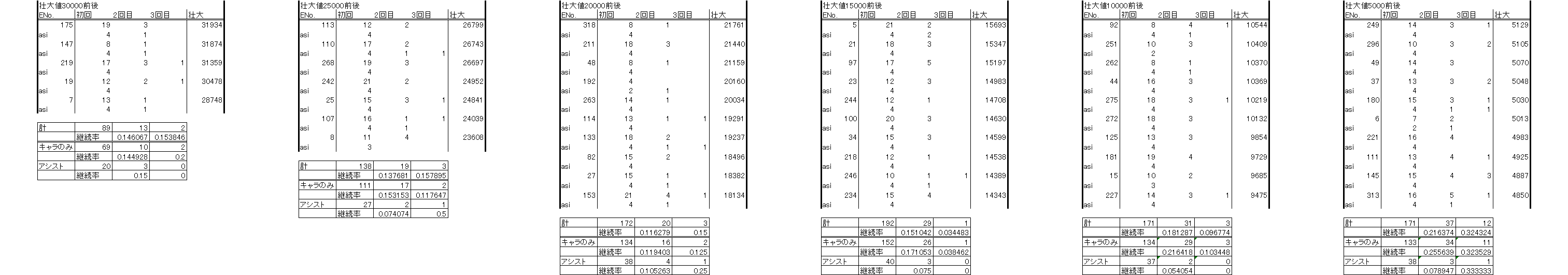 壮大30000、25000、20000、15000、10000、5000それぞれの連続行動率!