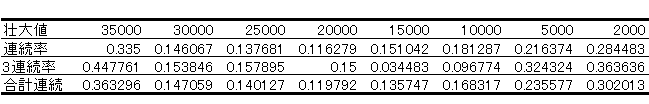 壮大値2000と35000だと一回の儲けは17.5倍になるところですが、連続率を勘定に入れると13.5倍程度に収まるんですねえ。