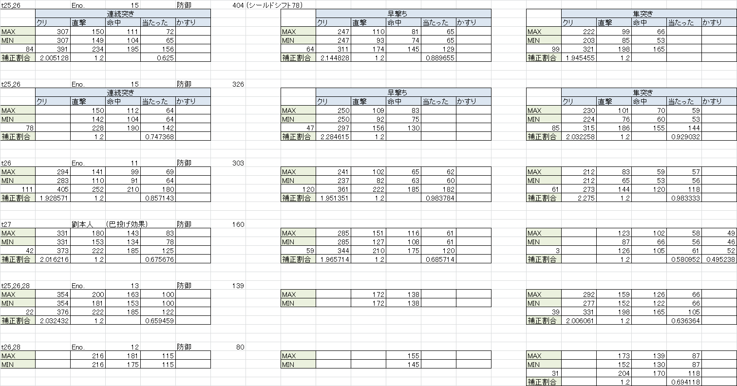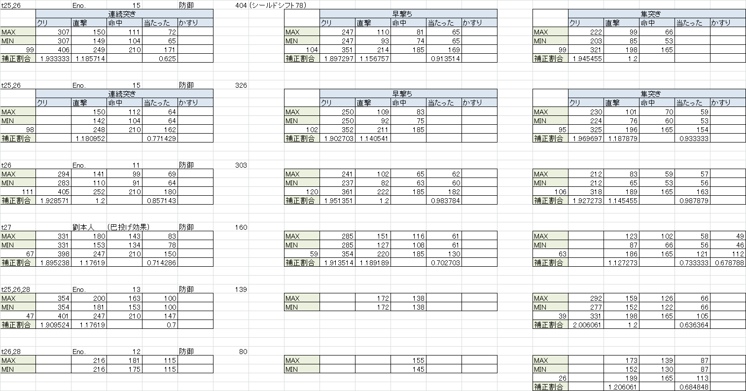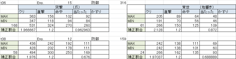 とりあえずこれで命中判定ごとのダメージ幅に関しては調査終了。