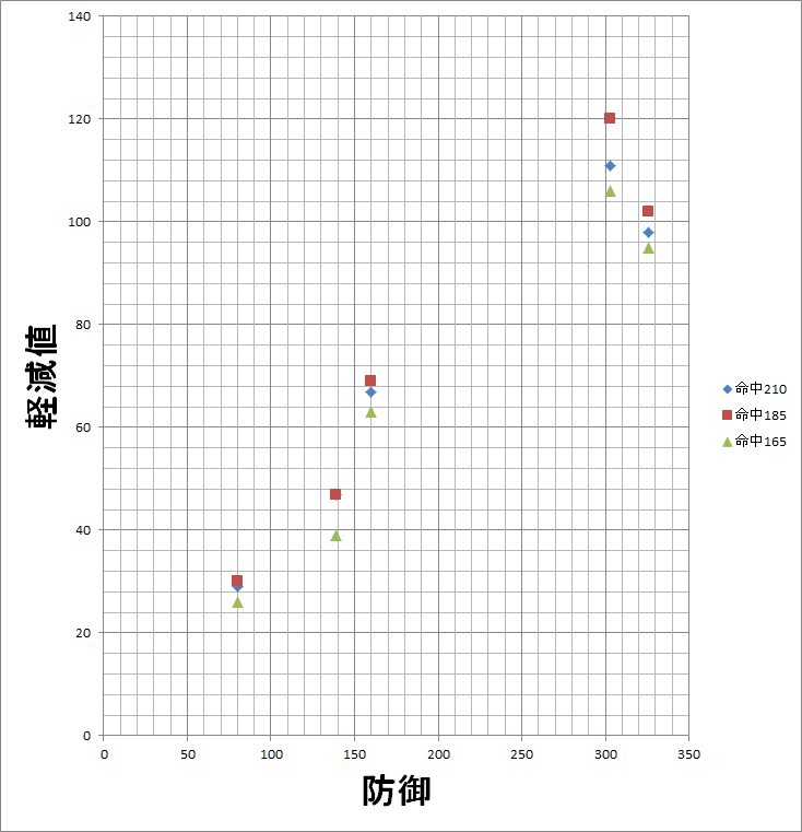 この一定値が計算上での軽減値、つまり防御の役割を果たしている、と考えられますね。