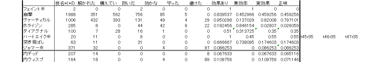 攻撃技でも、崩撃・ヴァーティカル・ホライゾン辺りは敵が使っている為にそれなりにデータが取れていますね。